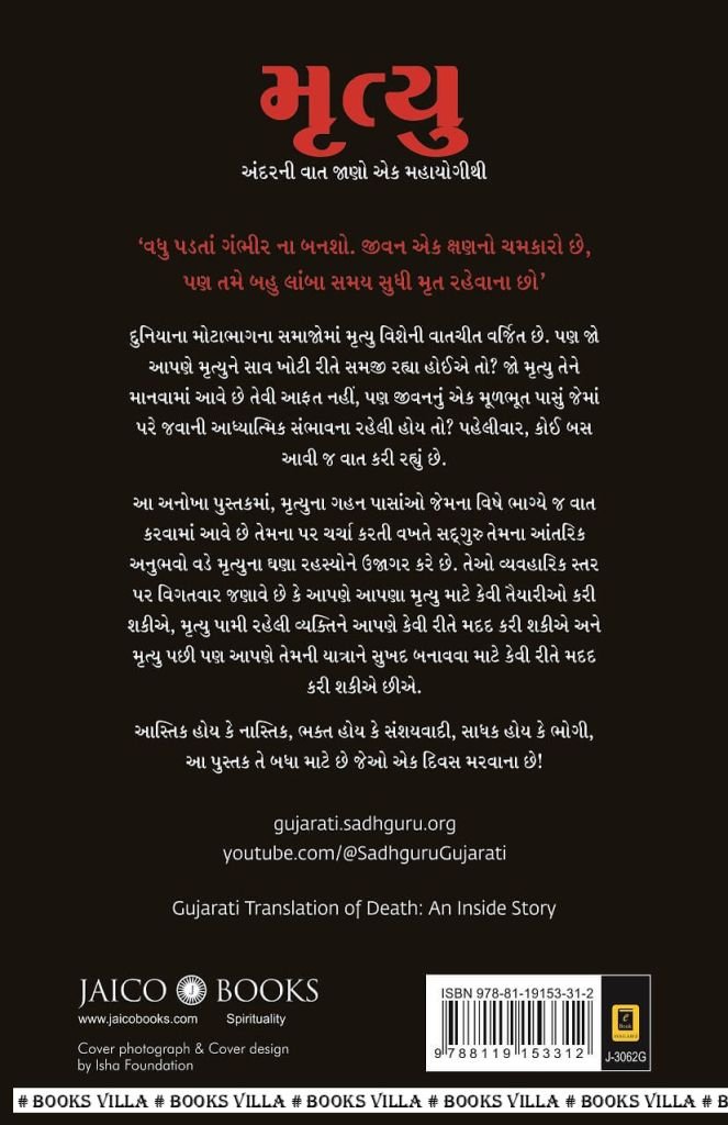 આ અનોખા પુસ્તકમાં મૃત્યુના ગહન પાસાઓ જેમના વિષે ભાગ્યે જ વાત કરવામાં આવે છે તેમના ઘણા રહસ્યોને ઉજાગર કરે છે. તથા આપણે આપણા મૃત્યુ માટે કેવી તૈયારીઓ કરી શકીએ, મૃત્યુ પામી રહેલી વ્યક્તિને કેવી રીતે મદદ કરી શકીએ અને મૃત્યુ પછી પણ આપણે તેમની યાત્રાને સુખદ બનાવવા માટે કેવી રીતે મદદ કરી શકીએ છીએ.