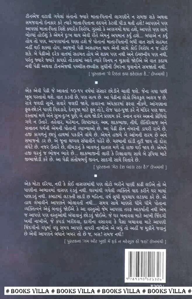 ટીનએજ વટાવી ગયેલાં સંતાનો જ્યારે માતા-પિતાની લાગણીને ન સમજી શકે અથવા સમજવાનો ઇનકાર કરે ત્યારે માતા-પિતાના હૃદયને કેટલી પીડા થતી હશે! આપણને પણ આપણાં માતા-પિતા વિશે ક્યારેક વિરોધ, ગુસ્સો કે અણગમો થયા હશે, આપણે પણ સામે બોલ્યાં હોઈશું કે એમને દુઃખ થાય એવી રીતે એમનું અપમાન કર્યું હશે... બધાએ ન કર્યું હોય તો પણ, આપણામાંના ઘણા હશે જે પોતાનાં માતા-પિતાની બધી વાત સાથે સહમત નહીં થઈ શક્યા હોય. આજની પેઢી અસહમત થાય એની સામે કોઈ વિરોધ ન જ હોઈ શકે. બે પેઢીઓ દરેક વાતમાં સહમત હોય એ શક્ય પણ નથી અને ઇચ્છનીય પણ નથી, પરંતુ જ્યારે જ્યારે કાયદો તોડવામાં આવે ત્યારે વિનય ન ચુકાવો જોઈએ એ વાત કદાચ નવી પેઢી અથવા ટીનએજથી પચ્ચીસ-છવ્વીસ સુધીની ઉંમરના યુવાનોને સમજાતી નથી.